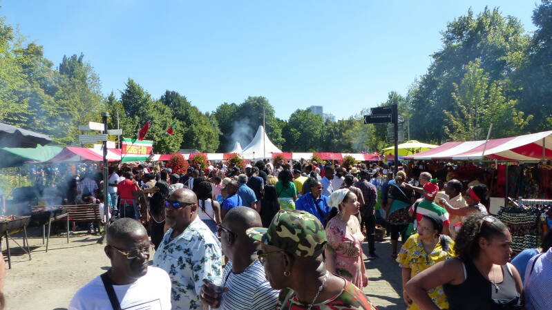 Volgens goede Surinaams-Caribische gebruiken is er een gezellige drukte met mannen, vrouwen en kinderen in prachtige klederdrachten. Natuurlijk is er volop eten en is de Creoolse vrouw Joosje aanwezig met haar lekkers zoals versgebakken gomma- en pindakoekjes en bojo, kokos-, cassavetaart. De stoere mannen staan trots bij hun barbecue waarop kippenboutjes met geheime Creoolse marinade. Ook tante Sita is er met haar bara, rotie en vele chutneys.