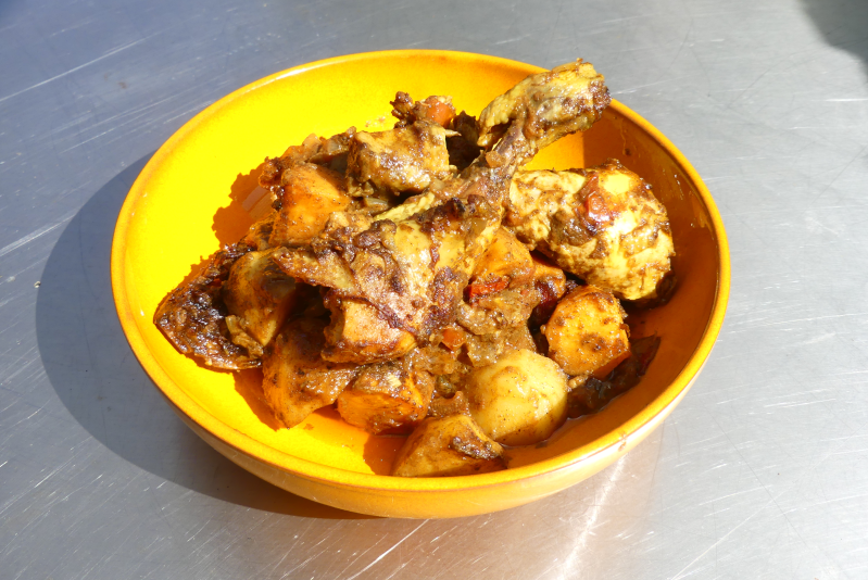 Deze ovenschotel eten we graag met rotie óf nan. Ik maak in 1 kerrieschotel biologische kippenbouten óf vleugels, aardappels en zoete aardappels. Er kunnen ook stukjes aubergine of pompoen bij. Hierdoor eten we meer groente en minder vlees en is het gerecht goed betaalbaar. Meng als het gerecht bijna klaar is eventueel gekookte kikkererwten er door.