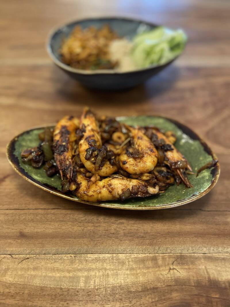 Deze garnalen maak je in 5 minuten en serveer je als snack, voorgerecht of met een beetje kokosmelk bij het hoofdgerecht.